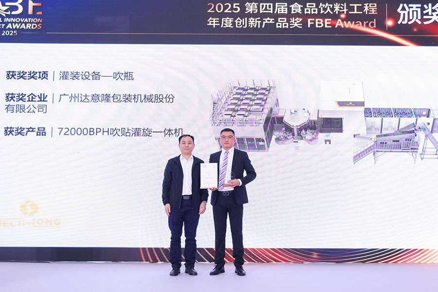 2025年10月28日,達(dá)意隆憑借其推出的72000BPH吹貼灌旋一體機(jī),在眾多參賽成果中脫穎而出,榮膺“第四屆食品飲料工程年度創(chuàng)新產(chǎn)品獎(jiǎng)(FBE Award 2025)”。該獎(jiǎng)項(xiàng)不僅是對(duì)達(dá)意隆在液態(tài)包裝領(lǐng)域持續(xù)創(chuàng)新與技術(shù)深耕的高度認(rèn)可,更充分體現(xiàn)了其在幫助客戶降本增效、推動(dòng)行業(yè)可持續(xù)發(fā)展方面所展現(xiàn)的技術(shù)實(shí)力與卓越價(jià)值。