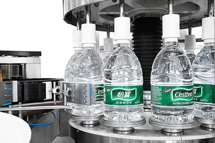 伺服系統(tǒng)轉(zhuǎn)瓶定位,可在容器任意位置貼標(biāo),定位精度高,響應(yīng)速度快。