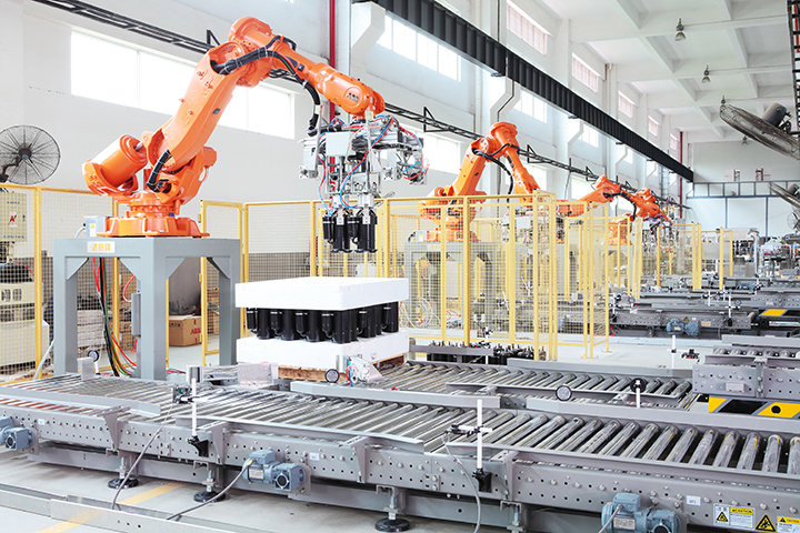 機器人夾具可以根據(jù)廠家的產(chǎn)能,場地的需要,采取整層抓取,或者單箱或多箱或一列抓取,靈活性大,適用的產(chǎn)能范圍也大。